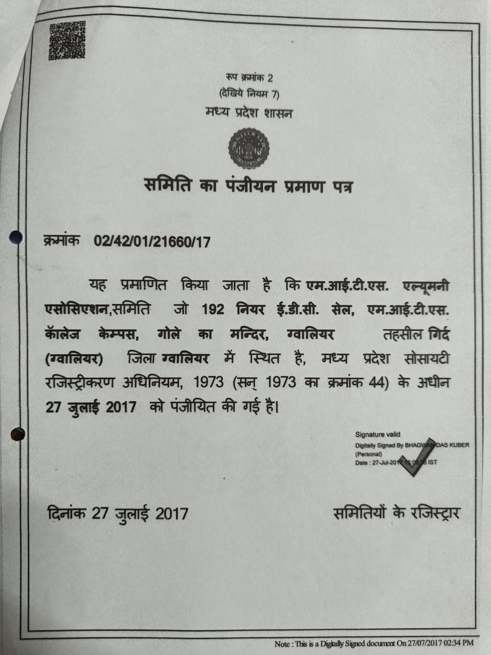Established on 14th Nov 1957, Madhav Engineering college in Residency, with three branches of Engineering. Later on it became Madhav Institute of Science and Technology. The Institute will complete its 60 glorious year in 2017. Late H.H. Jiwaji Rao M. Scindia our founder dreamed it and it was developed by Honorable Late Rajmata Vijaya Raje Scindia, Late H.H. Madhav Rao Ji and now getting guidance from Shrimant Jyotiraditya Ji Scindia. In any organization Alumni plays a very important role. Institute is recognized by them and they are recognized by Institute, Alumni Association MITS, Gwalior has been working since last many years and now pledge to work in the interest of Alumni, Institute Student and Staff